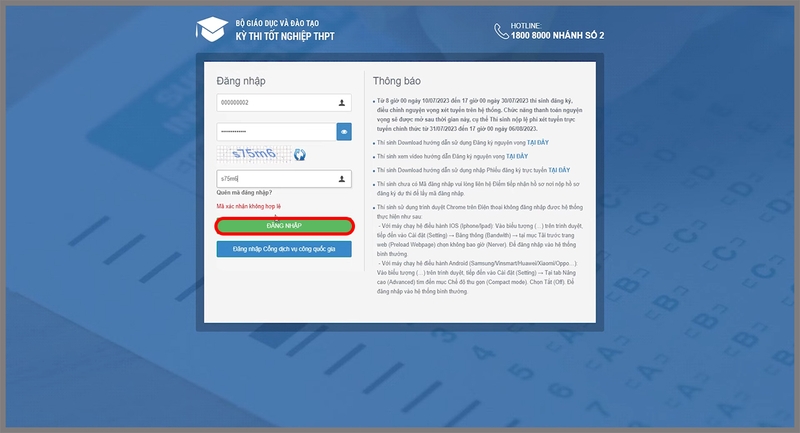 Bước 1: Truy cập vào website chính thức của Kỳ thi tốt nghiệp THPT do Bộ GD&ĐT công bố, sau đó đăng nhập bằng tài khoản cá nhân đã được cấp trước đó.