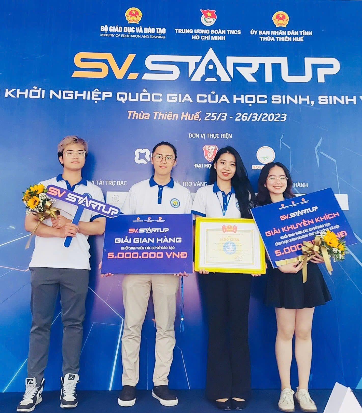 Tham gia SV.Startup – Khởi nghiệp quốc gia của học sinh sinh viên năm 2023 –Minh Nhật đứng thứ nhất từ trái qua